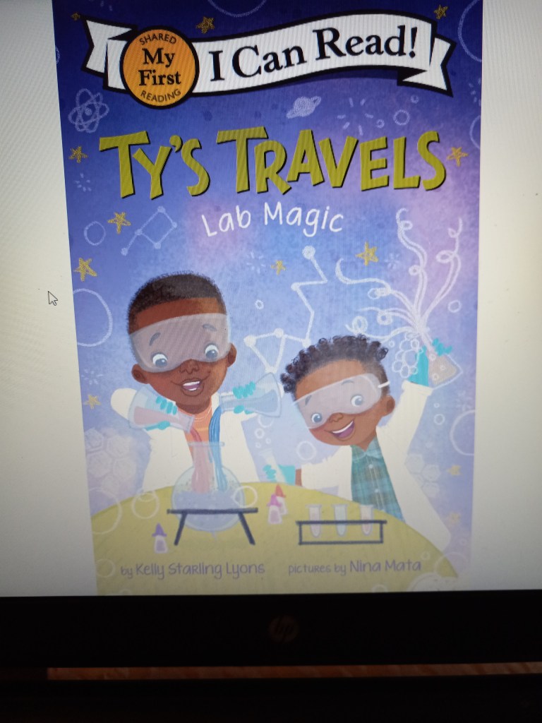 Ty and his older brother Corey visit a science museum in the book: Ty’s Travels Lab Magic (2022) by Kelly Starling Lyons and Illustrated by Nina Mata. They enjoy being scientists and use the power of imagination to continue their adventure. The book has a cute and simple storyline with fun illustrations. It’s a part of the Ty’s Travels “My First I Can Read” series.