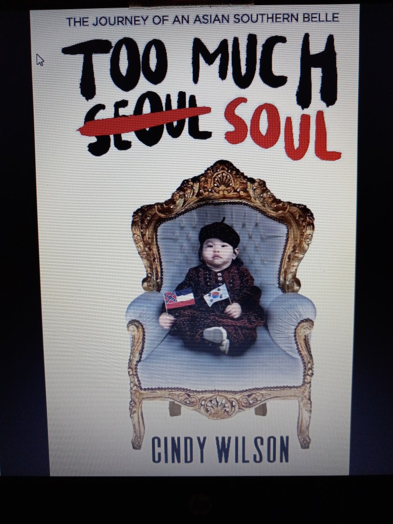 Cindy Wilson is a woman who identifies as Asian, but states her culture is Black. She shares her unique true story in the book: Too Much Soul: The Journey of an Asian Southern Belle by Cindy Wilson (2018, 216 pages, kindle edition). She was born in Seoul, South Korea and adopted by an African-American military couple stationed in the country. Her mother had women’s health issues that often caused miscarriages. Faced with the prognosis that the couple would be unable to have their own biological child, they chose adoption. They returned to the U.S. with Cindy and three years later her mother gave birth to her little brother Adrian. She grew up in the American Deep South: Jackson, Mississippi.