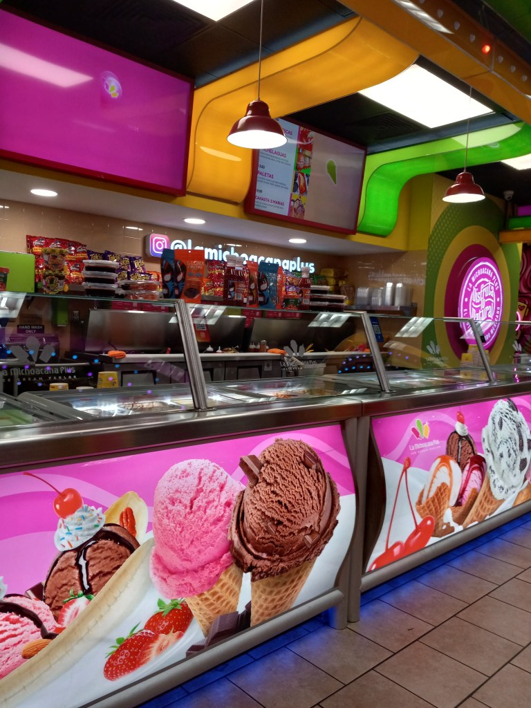 La Michoacana Plus is an ice cream parlor franchise that features Mexican ice cream flavors and snacks. You can try Aguas Frescas (natural fruit drinks), Vaso de Elote (street corn in a cup), or nachos. The Strawberry Raspado (shaved ice) is one of my favorites. So much ice cream, so little time.